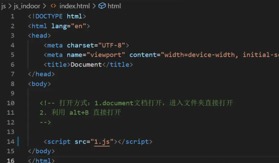 JS是一门脚本语言,最初是用来给页面增加动态交互效果的,所以它可以在浏览器中被运行,我们可以创建一个index.html和1.js,将js文件引入html的script中,利用右键,选择Open with Live Server打开文件。