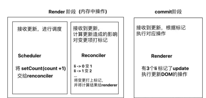 对应到 react 里就两个阶段