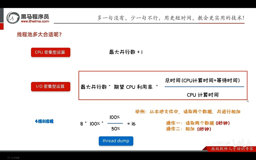 i/o密集型运算(读取较多) 最大并行数*期望CUP利用率*总时间(CPU计算时间+等待时间)/CUP计算时间