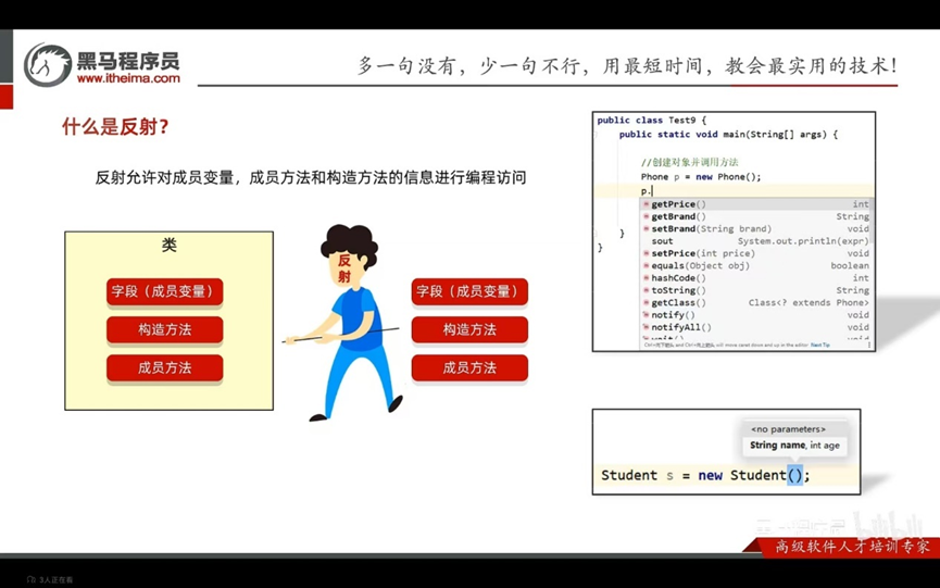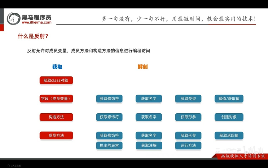 反射允许对封装类的字段(成员变量),方法(成员方法)和构造函数(构造方法)的信息进行编程访问