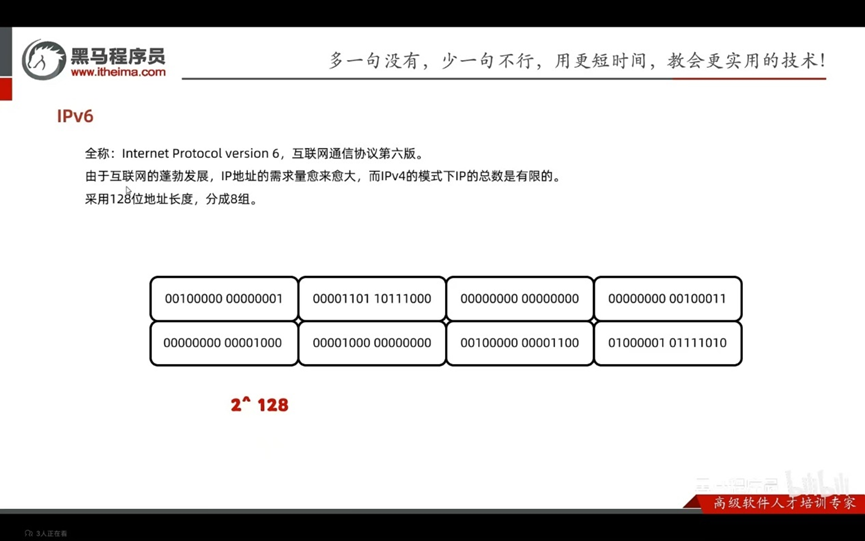 由于互联网的蓬勃发展,IP地址的需求量愈来愈大,而IPv4的模式下IP的总数是有限的,采用128位地址长度,分成8组。