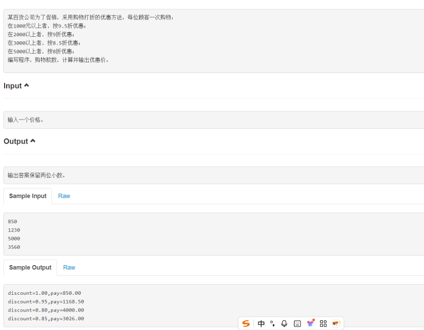 printf("discount=%.2f,pay=%.2f\n", discount, pay);