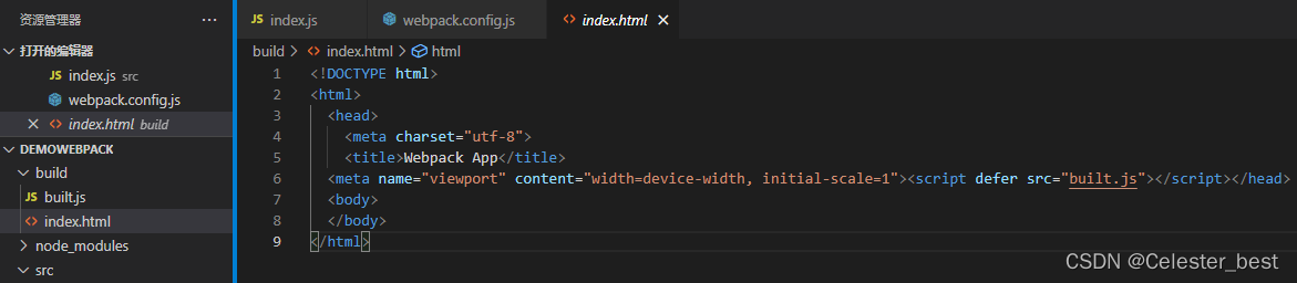 执行webpack命令时,会默认会创建一个空的html文件,并且会默认引入打包输出的所有资源(如js资源或者样式资源)