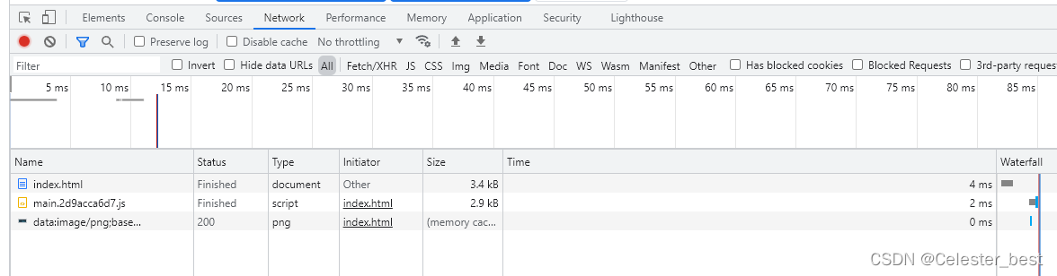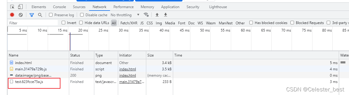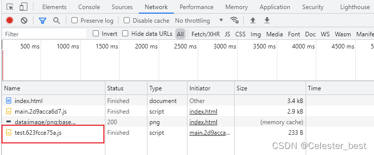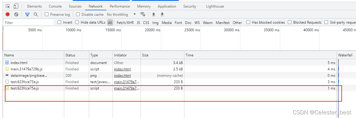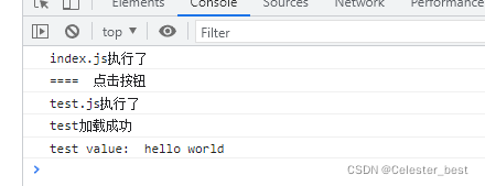 可以看到没有点击按钮时,test.js就已经加载了 。如果test.js比较大,加载比较耗性能。我们就希望能在需要使用的时候在加载