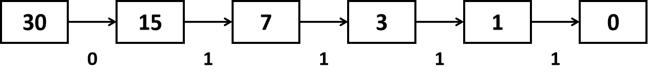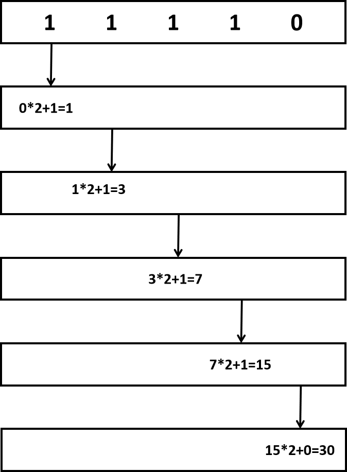 最后一步:停止操作,将得到的商翻转,得到【30】的二进制数【11110】