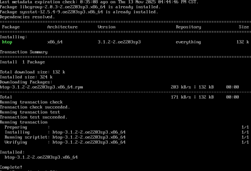 # 使用htop动态监控CPU和内存(若未安装,可使用sudo dnf install htop -y)