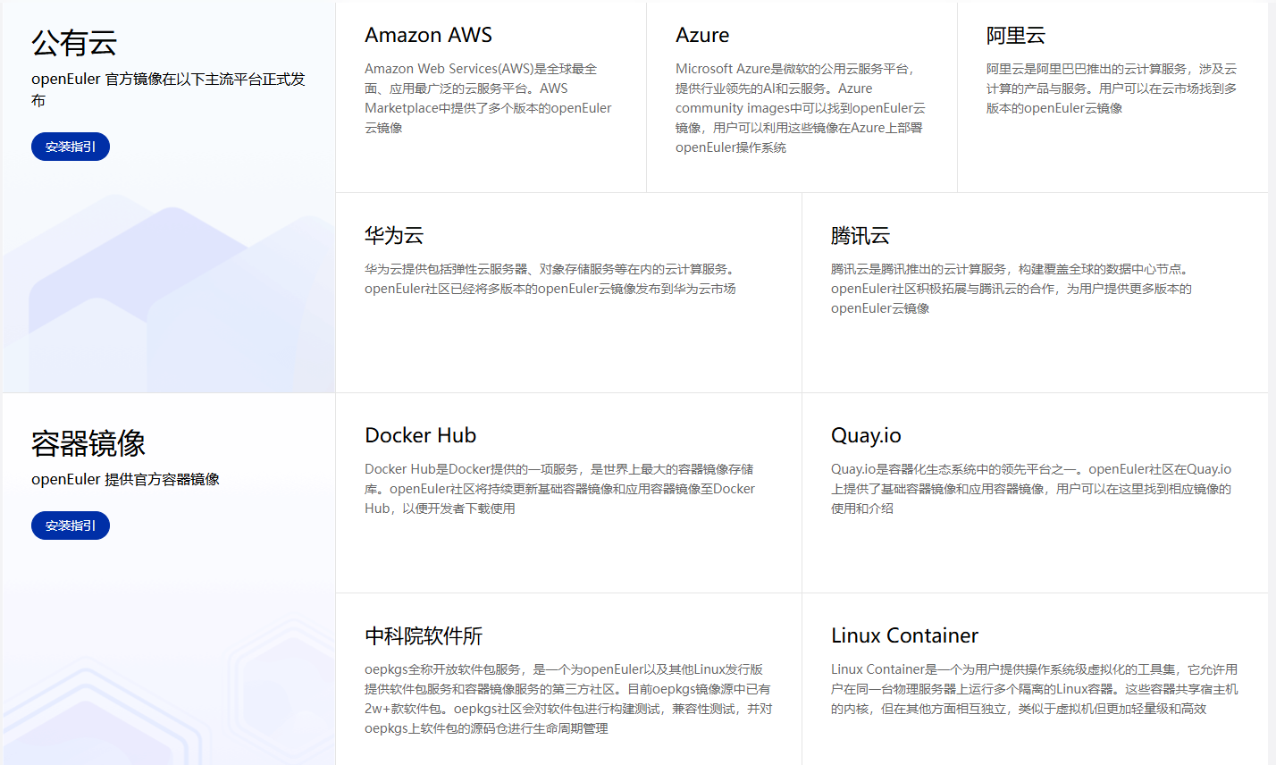 最直接的方式是访问openEuler官方网站的下载页面。这里提供了所有长期支持(LTS)版本和创新版本的镜像文件。网站布局清晰,提供了ISO镜像、云镜像和容器镜像等多种格式,适配从物理机、虚拟机到云环境的全场景需求。