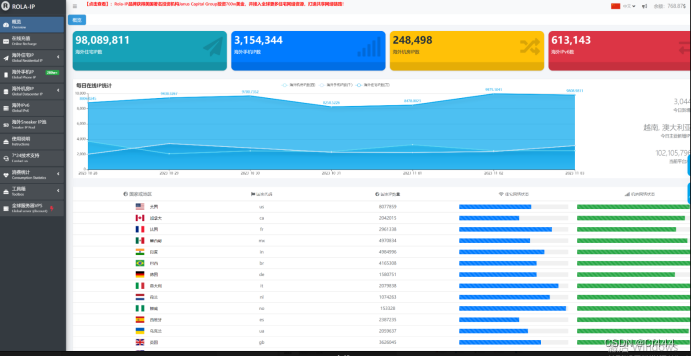 目前Rola-IP在210多个国家设有服务器,覆盖78000多个城市,IP数量1亿多。提供【动态住宅IP】、【静态住宅IP】、【5G/4G手机IP】、【动态机房IP】、【静态机房IP】、【IPv6代理】等各项IP代理服务,与一些500强大公司均有合作,可用于学术研究、市场调查、广告验证以及搜索引擎优化监控。支持HTTP、HTTPS以及SOCKS5协议。海量的动态住宅IP以及静态住宅IP,响应速度达到直连的速度,且强大的技术管理团队,会帮助你解决各种问题。IP覆盖范围多、支持任意时效、接入简单,近期因集团融资成功,推出客户单价优惠活动,动作住宅、静态住宅IP只要2.2刀\GB,简直是使用者的福利。可以说目前海外IP代理市场最纯净、好用的就是这家ROLA-IP公司。
