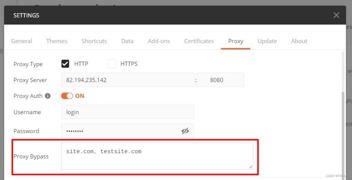 11.如果需要,你可以指定代理服务器不会生效的网站列表。在Postman中,这可以通过在“Proxy Bypass”参数旁边的空白字段中输入网站地址,用逗号分隔不同的网站。这样,即使你已经配置了代理,这些指定的网站将直接连接,而不通过代理服务器。