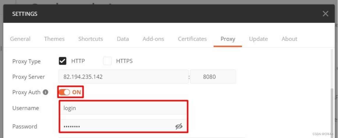 10.如果你的代理服务器使用用户名和密码进行授权,将“Proxy Auth”参数旁边的切换开关切换到“ON”位置。 在“Username”字段中输入用户名。 在“Password”字段中输入代理的密码。