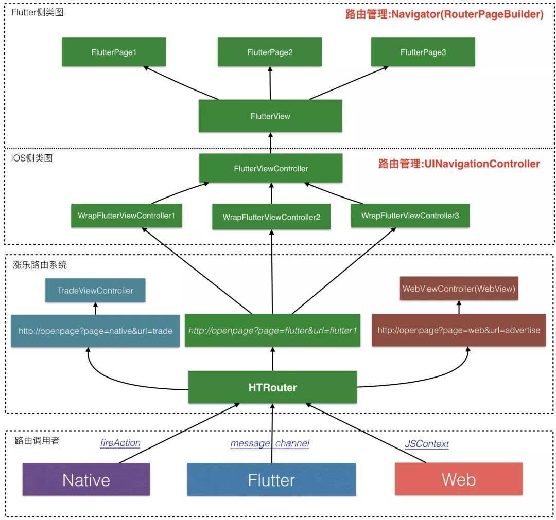 为此,我们借鉴了闲鱼团队开源的混合栈管理方案,并与我们现有的路由管理方案相结合,在涨乐上实现了混合栈管理,具体架构图如下: