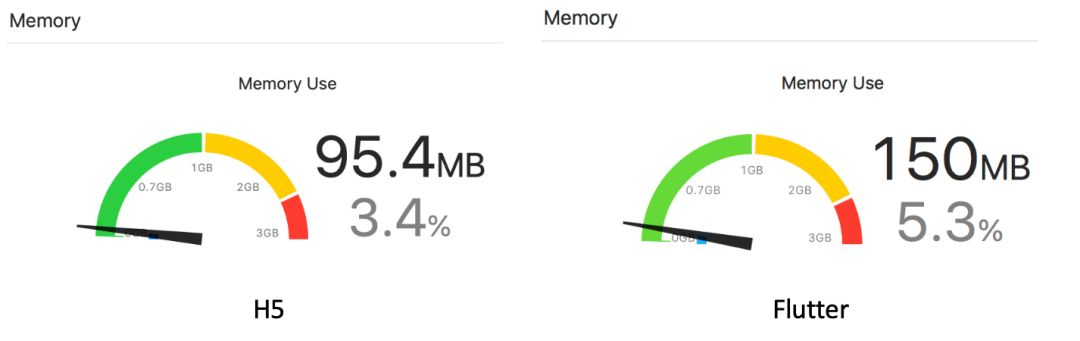 内存表现方面,H5 页面使用的内存要小于 Flutter。