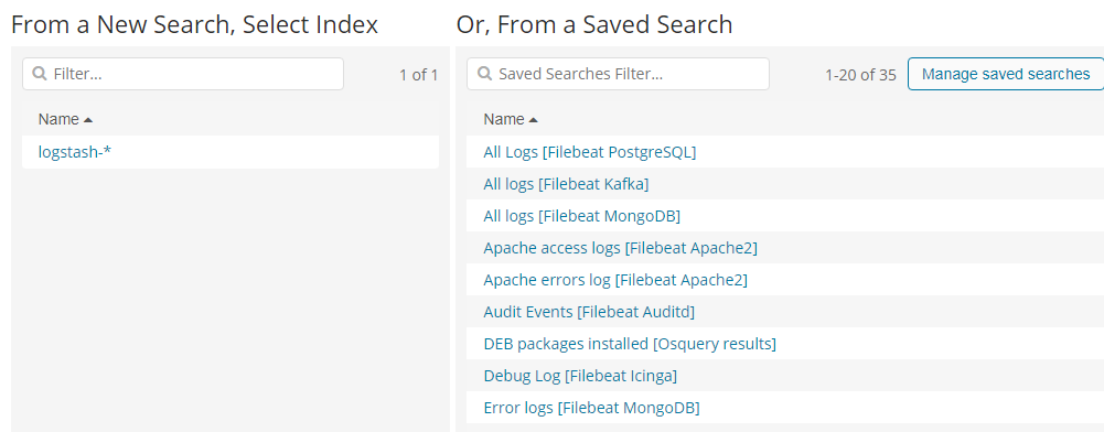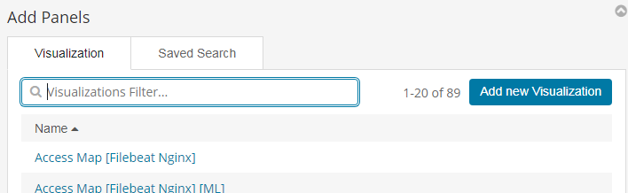 第4步:为了添加一个可视化,从可视化列表中选择一个,或者点击“Add new visualization”按钮新创建一个
