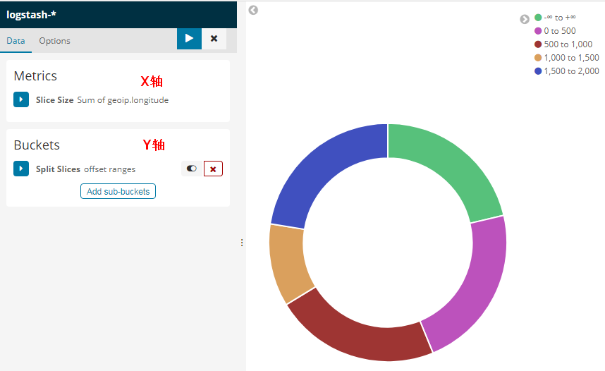 第5步:在可视化的构建器中选择Y轴的聚合操作。例如,sum,average,count等等
