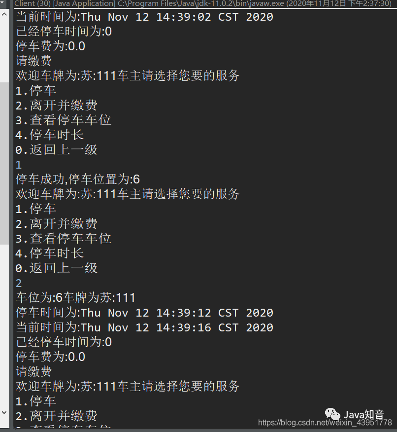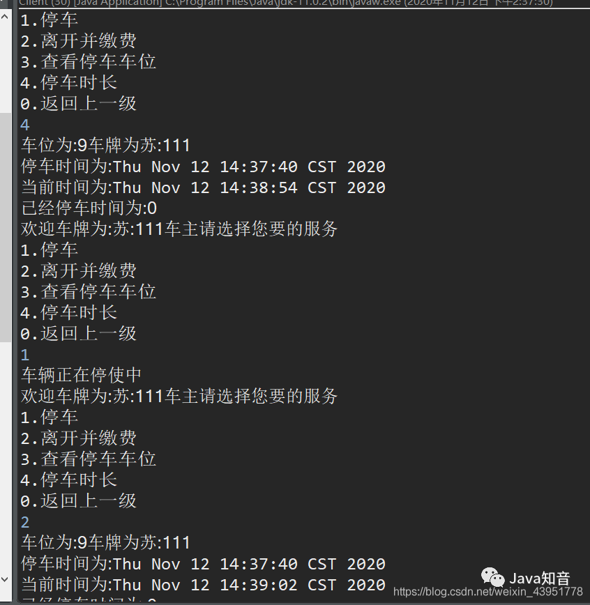 System.out.println("已经停车时间为:" + t);