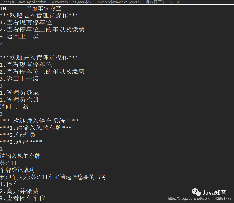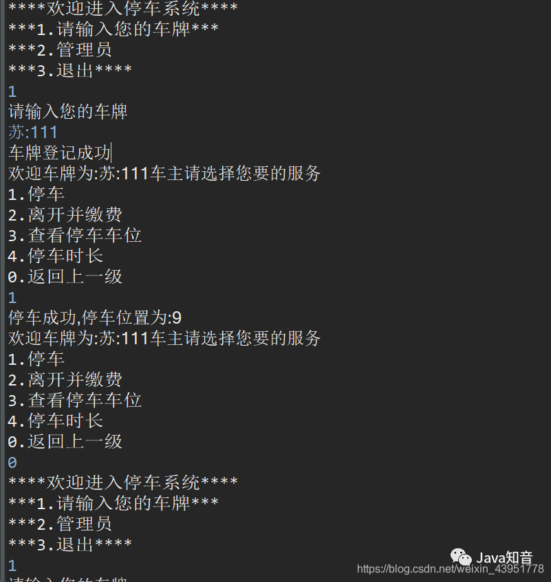 System.out.println("****欢迎进入停车系统****");