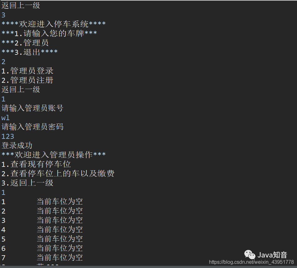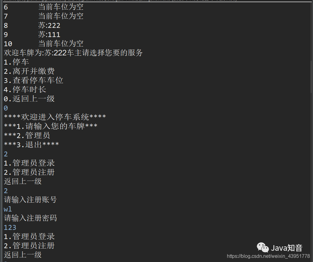 Menu_Manger2(carparkingservice, userserviceimpl, adminserviceimpl);//进行管理员操作