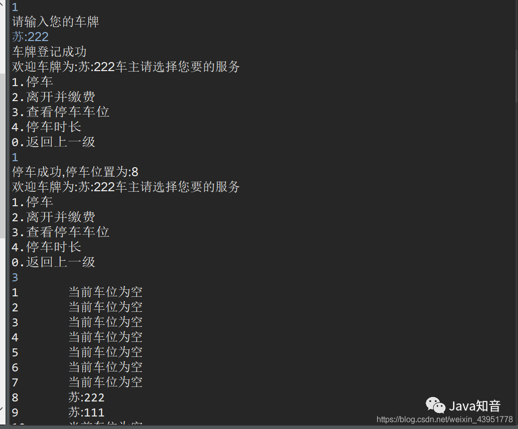 carparkingservice.showlist();//显示目前所有的空的车位