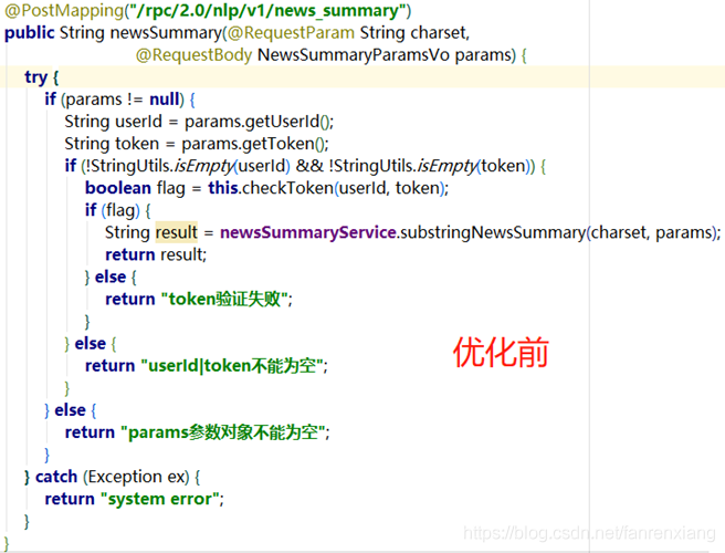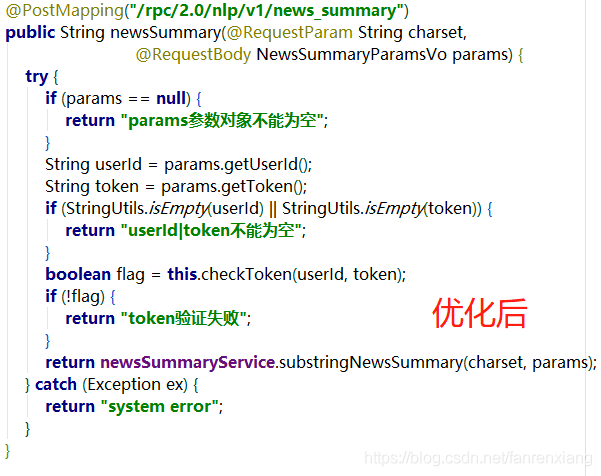 这点非常容易理解,就是说在业务逻辑里面,先把不符合条件的给先过滤掉,而不是层层嵌套if-else判断,结合代码图看一下: