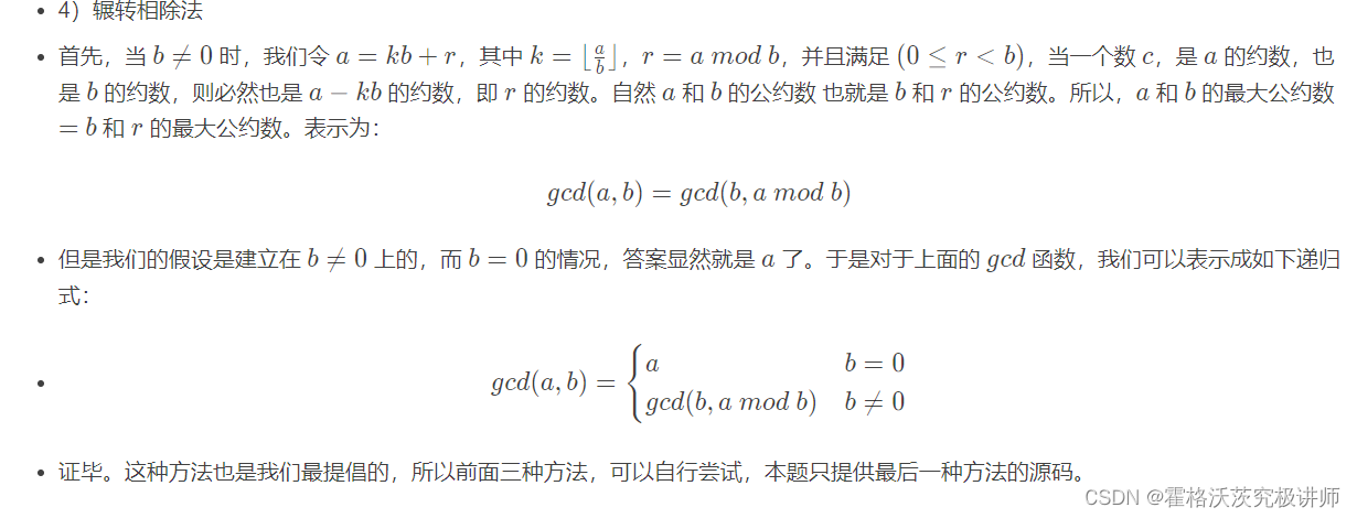 本文介绍了两种计算最大公约数(GCD)的方法:循环枚举和辗转相除法。循环枚举通过遍历所有可能的约数来找到公共约数,而辗转相除法则利用了欧几里得算法,通过连续相除直到余数为0,最后一个非零余数即为最大公约数。这两种方法都是计算机科学中基础的算法,对于理解和实现有重要意义。