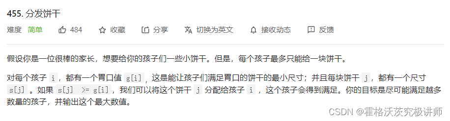 所以局部最优是让最大的饼干满足胃口最大的小孩,所以双指针