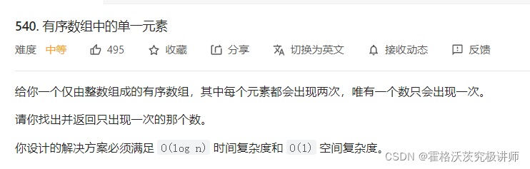 如本题,设目标值为x,举例可知,在x的左边,如果num[i]==nums[i+1],那么i是偶数,如果在右边,那么说明是奇数