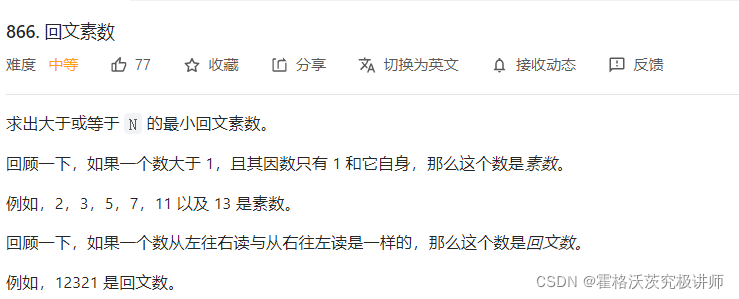我的思路:从n开始遍历,先检查是否是素数,再检查是否是回文数