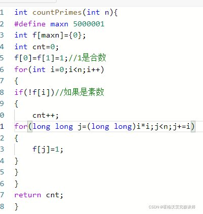 遍历1到n,如果是素数,就将素数的倍数都标记为1