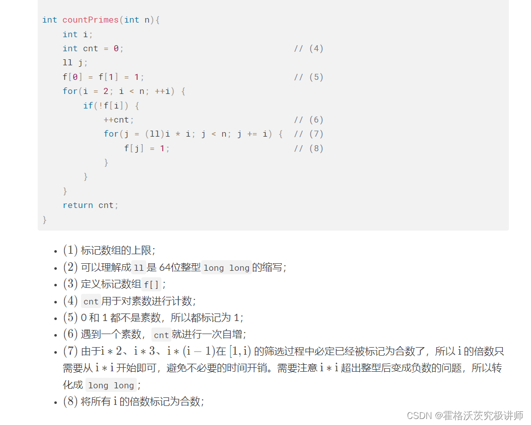为优化算法,j从i*i开始遍历,因为在之前的一定已经被标记过,到n为止(n为所给的数)
