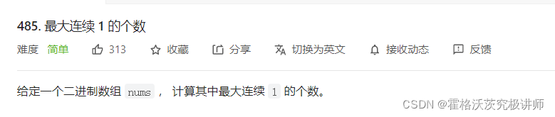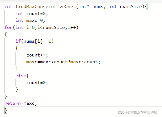 只能是1或0,是1就count++,并更新maxc,是0就将count置零