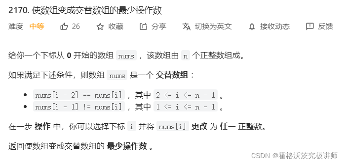 注:如果奇偶元素最多的元素相等,就要计算奇偶元素中次多的元素