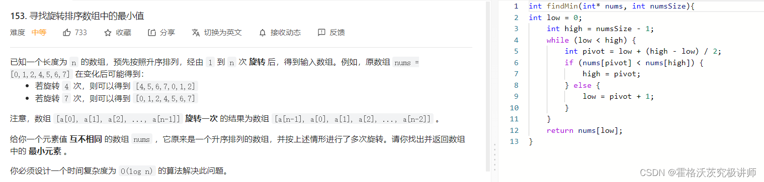 所以区别是当mid与high数值相等时,无法判断最小值究竟在哪个区间,所以此时抛弃右边界,将right=right-1