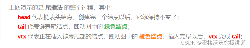 vtx 代表正在插入链表头部的结点,即动图中的 橙色结点,插入完毕以后,vtx 变成 head;