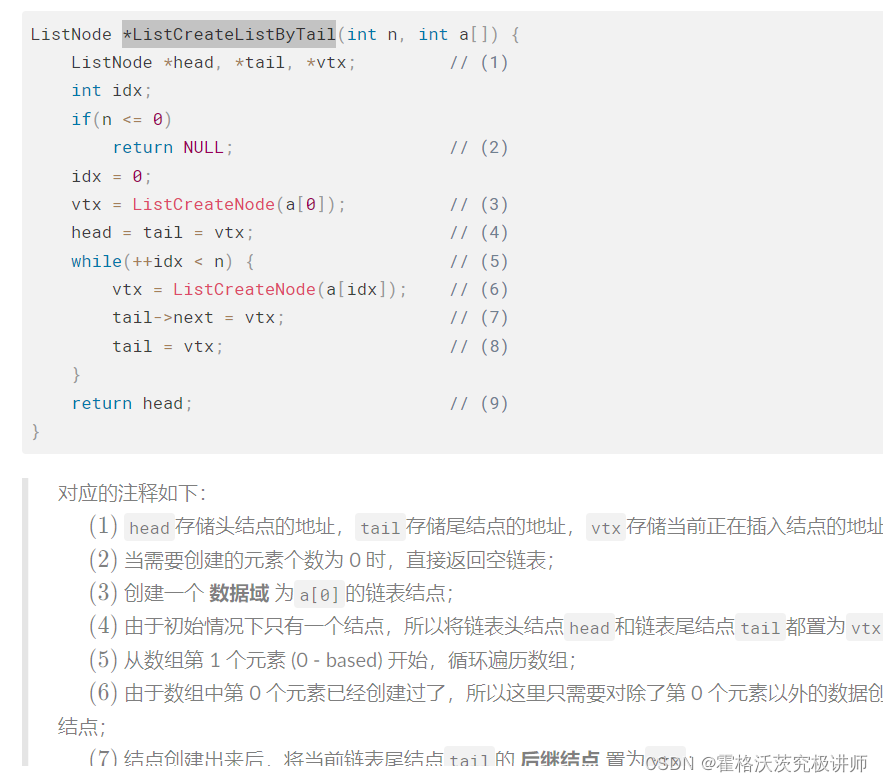 ListNode *ListCreateListByTail(int n, int a[])//n为结点个数,a[]存放数据