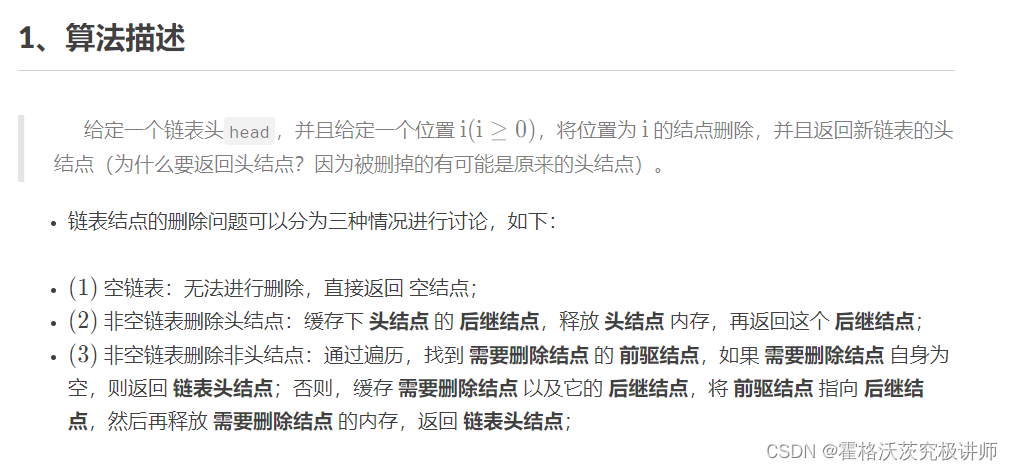 ListNode* dele(ListNode*head,int i)//删除i号结点