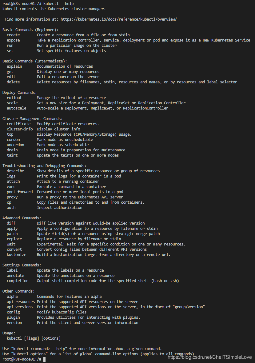 查看更多命令信息 Find more information at: https://kubernetes.io/docs/reference/kubectl/overview/