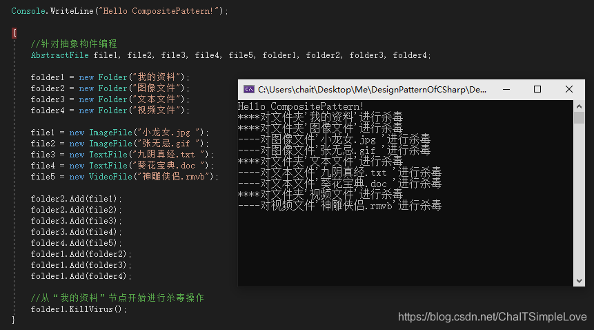 完整代码示例请查看 =》https://gitee.com/dolayout/DesignPatternOfCSharp/tree/master/DesignPatternOfCSharp/CompositePattern