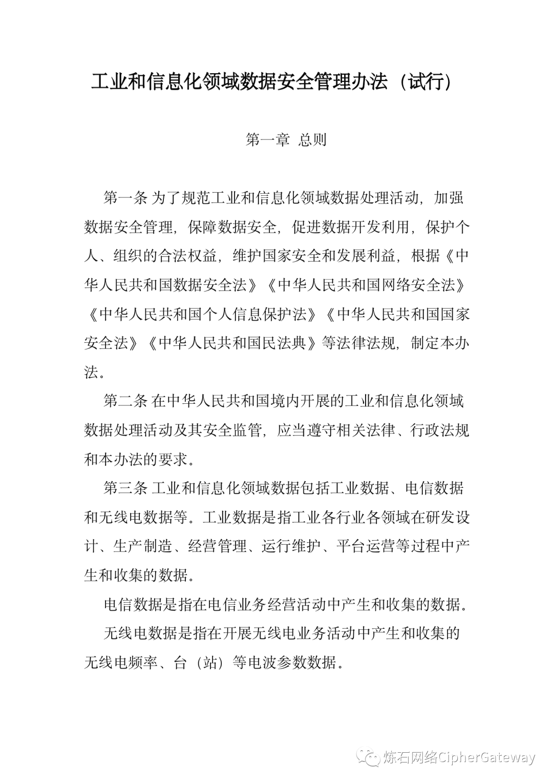 《工业和信息化领域数据安全管理办法(试行)》