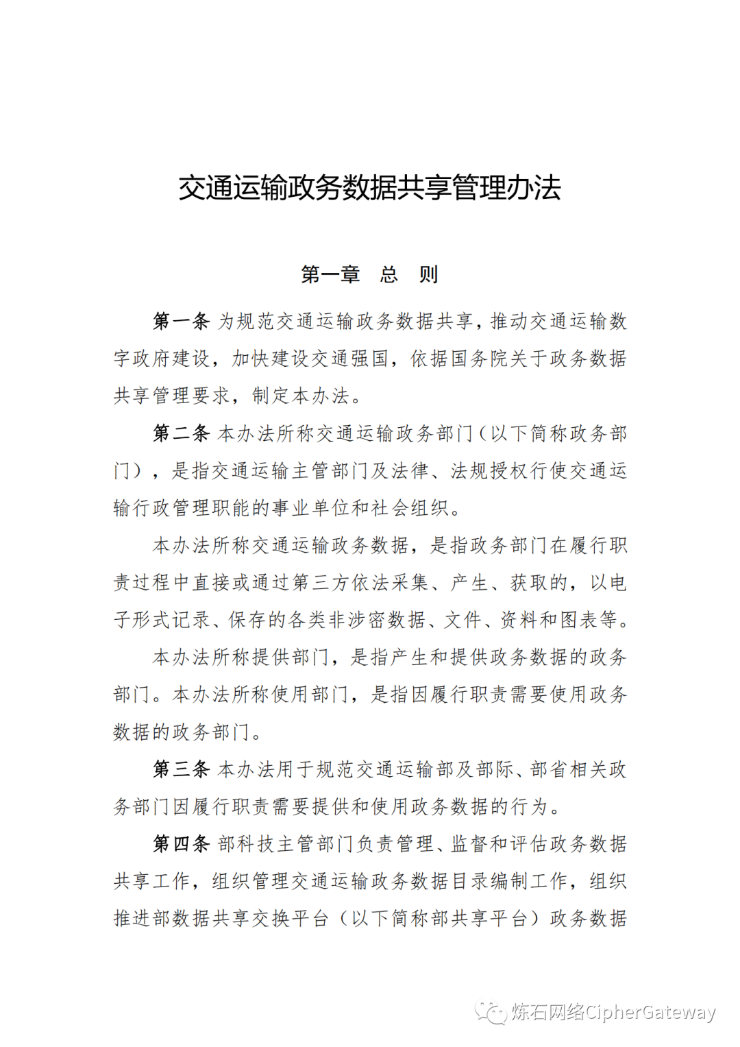 《交通运输政务数据共享管理办法》