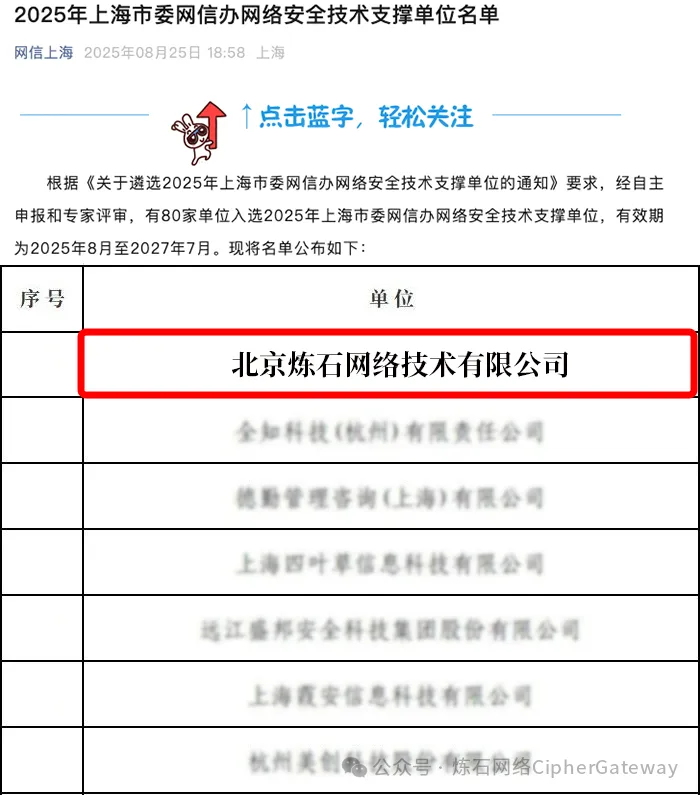 近日,“网信上海”发布2025年上海市委网信办网络安全技术支撑单位名单,炼石凭借免改造数据安全的技术优势、服务能力及应用成效,入选新一届支撑单位。炼石将参与上海市委网信办网络和数据安全保障及事件的应急处置工作,为支撑上海关键信息基础设施安全稳定运行、保障网络和数据安全贡献力量。