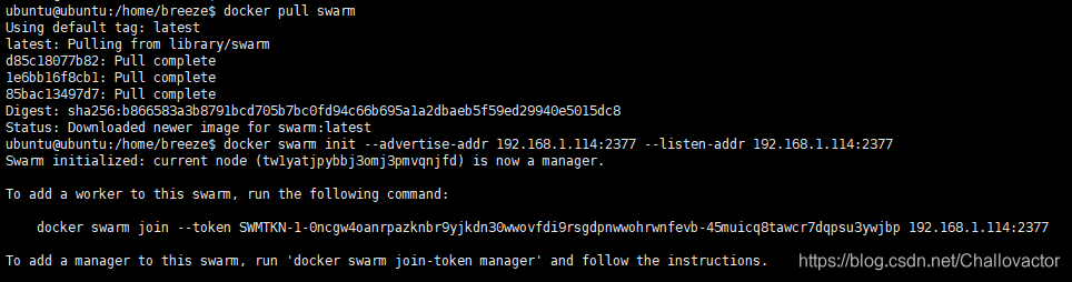 注:每个机器生成的token都不一样,要根据自己机器的生成的命令执行。如果遗失可以通过下面两个命令,分别找回manager、worker的join token