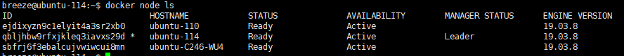 这里我在192.168.1.110,和192.168.1.124 上添加了工作节点,即 执行 $ sudo docker swarm join-token worker命令后显示的操作。