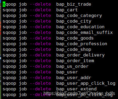 vim批量编辑 例子 假如我们想把这些sqoop_job前的空格删除 vim ./delete_full_sqoop_job.sh 把上图中红框选中的job复制进来,esc退出insert模式,光标停留在第一行空格处按ctrl+v 按方向键的左右覆盖空白处按方向键的上下可以选中多行,也可以使用数字+j选中对应数字的行数 如果需要删除选中的按下d即可 如果需要多行编辑的话按I(大写的i) 这时候光标会在第一行进入Insert模式输入 sqoop job --delete 输入完成后按ESC键即可