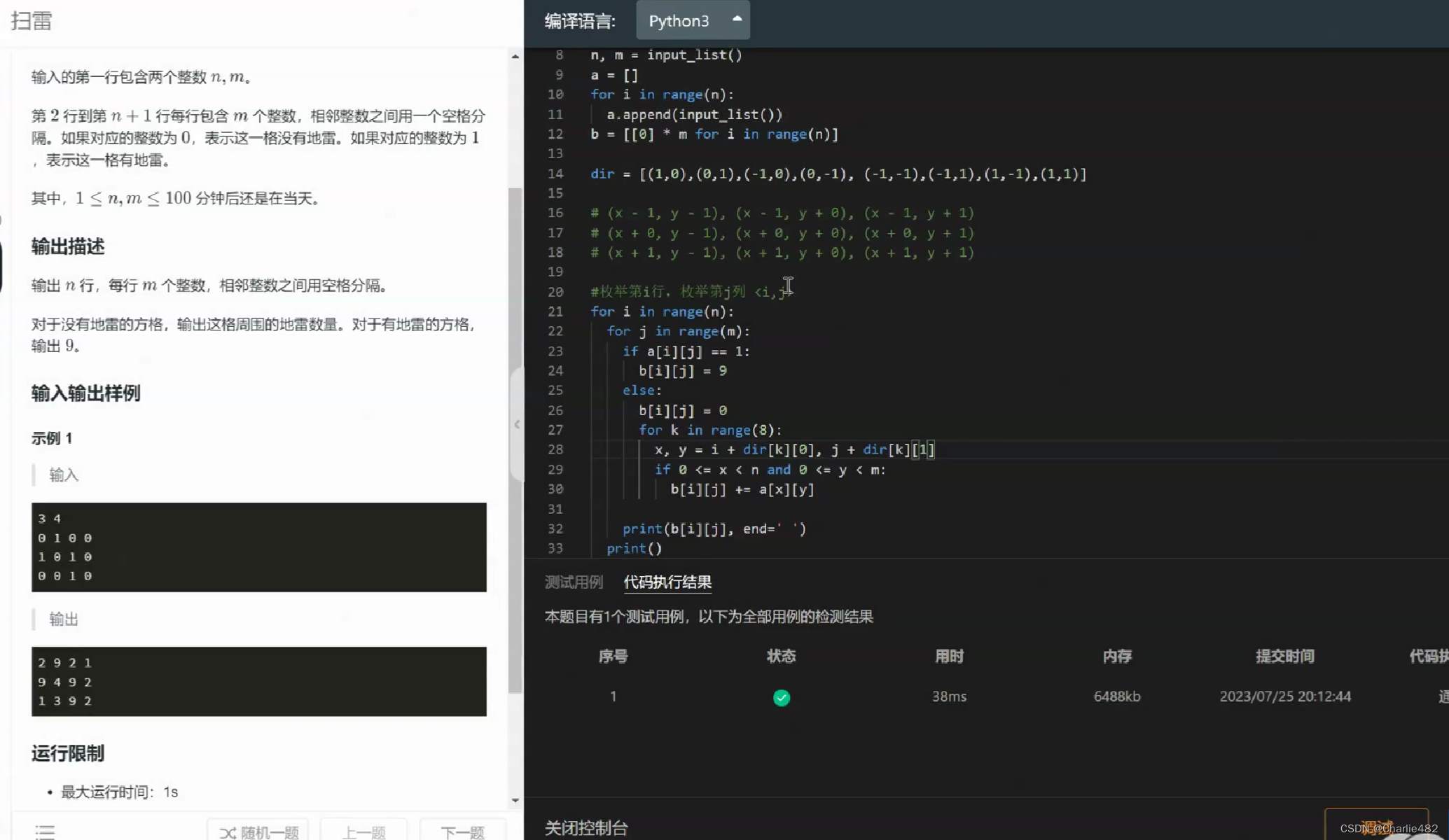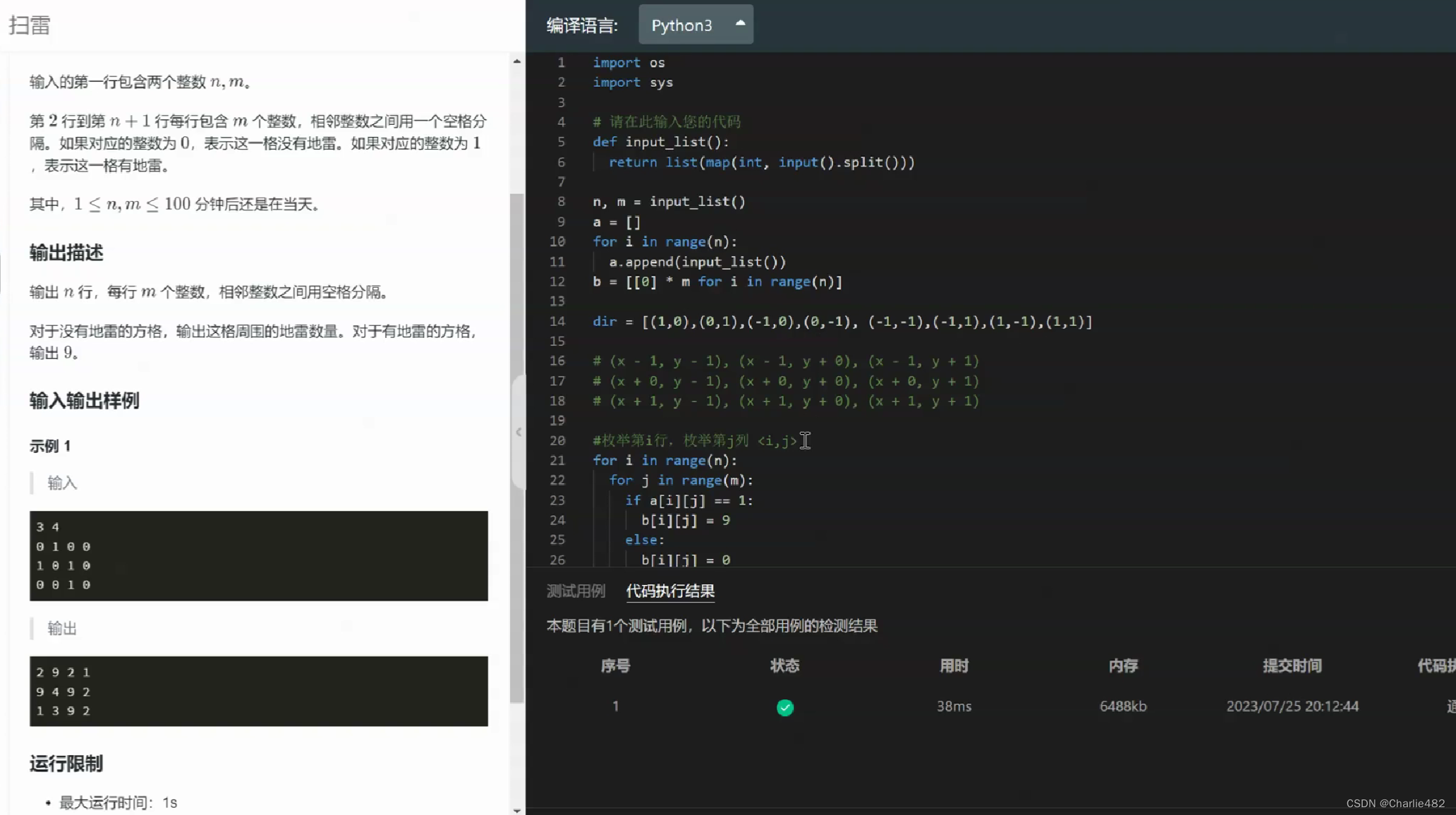 # 枚举第i行,枚举第j列