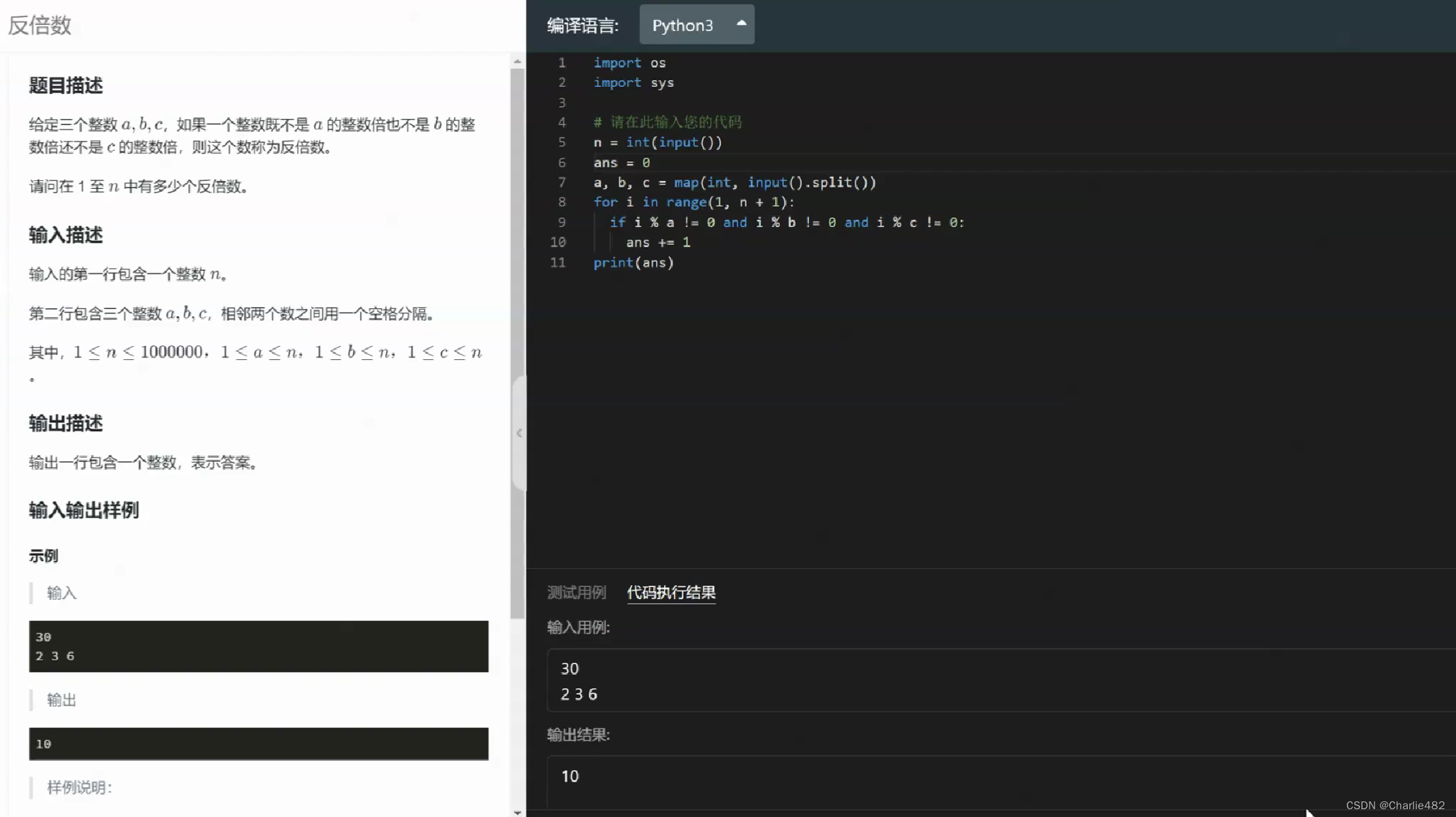 if i % a == 0 and i % b == 0 and i % c != 0: