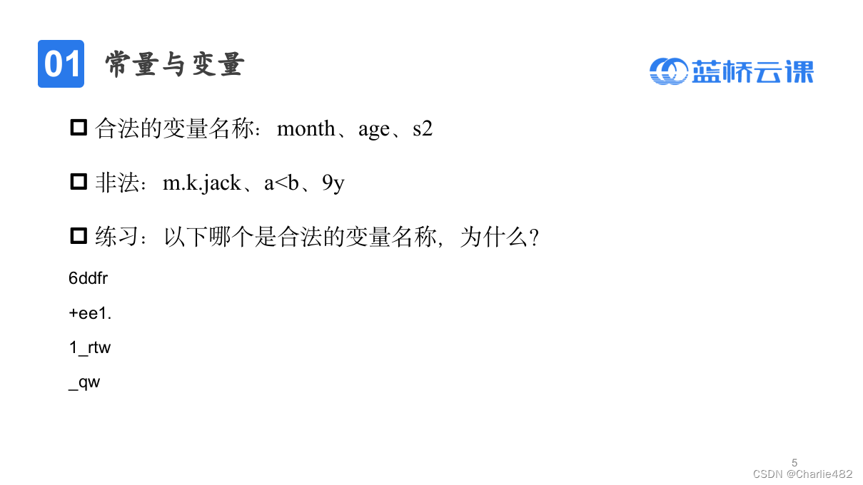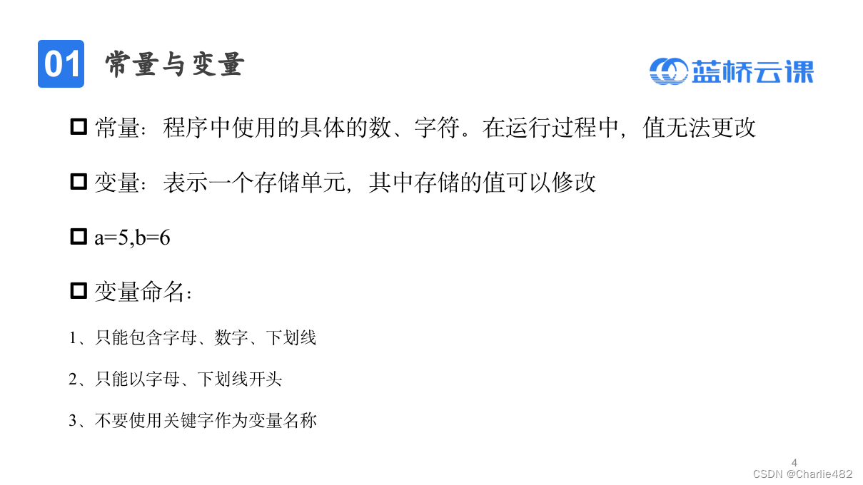 【蓝桥杯】省赛无忧班(Python 组)第 2 期 1.3常量、变量与运算符
