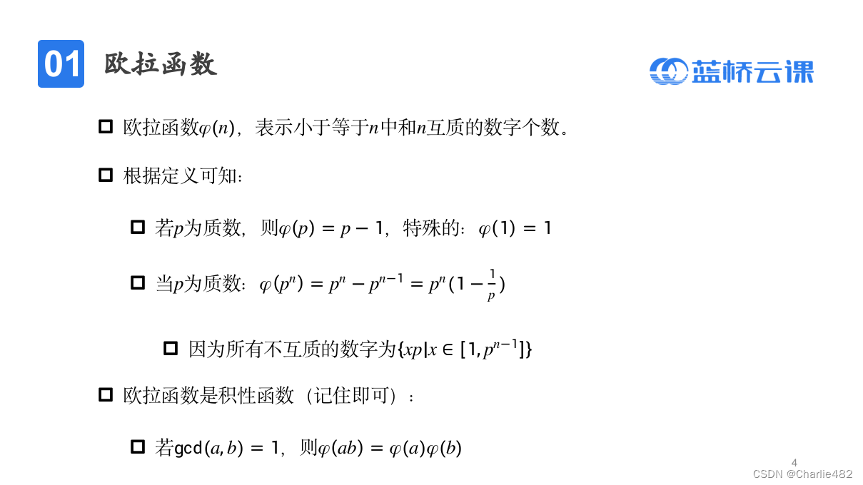 【蓝桥杯】省赛无忧班(Python 组)第 2 期 16.8数论 欧拉函数和欧拉降幂