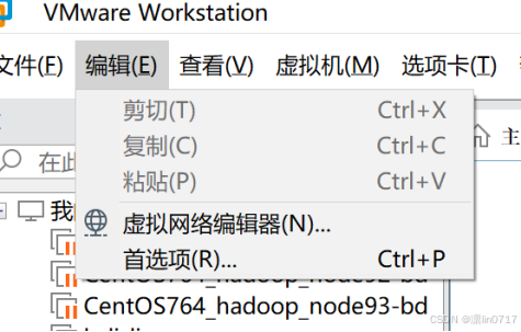 1.打开VMware Workstation,点编辑,选择虚拟网络编译器