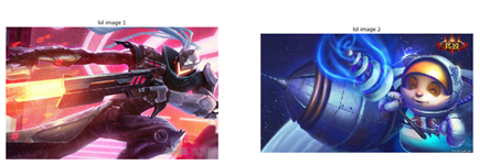 | 1 2 3 4 5 6 7 8 9 10 11 12 13 14 15 16 17 18 19 20 | #最后以一个综合例子总结matplotlib最基本的图片显示技巧吧 im_lol1 = plt.imread('lol.jpg') im_lol2 = plt.imread('1.jpg') figure = plt.figure(figsize=(20,10)) # 调整显示图片的大小 ''' figsize参数:指定绘图对象的宽度和高度,单位为英寸;dpi参数指定绘图对象的分辨率, 即每英寸多少个像素,缺省值为80。因此本例中所创建的图表窗口的宽度为8*80 = 640像素 ''' plt.axis("off")#不显示刻度 ax = figure.add_subplot(121) # 图片以1行2列的形式显示 plt.axis('off') ax.imshow(im_lol1) #第一张图 ax.set_title('lol image 1')#给图片加titile ax = figure.add_subplot(122) plt.axis('off') ax.imshow(im_lol2) ax.set_title('lol image 2')#给图片加titile plt.savefig('twp.jpg') plt.show() |
