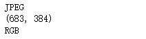 | 1 2 3 4 5 | img = Image.open('1.jpg') print(img.format) print(img.size) #注意,省略了通道 (w,h) print(img.mode) #L为灰度图,RGB为真彩色,RGBA为加了透明通道 img.show() # 显示图片 |